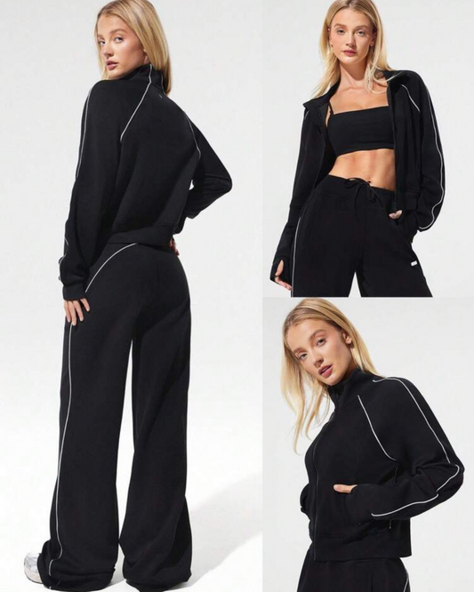 GlowMode™ Zweiteiler – Lässiger Jogger mit Kontrastnähten & Reißverschluss