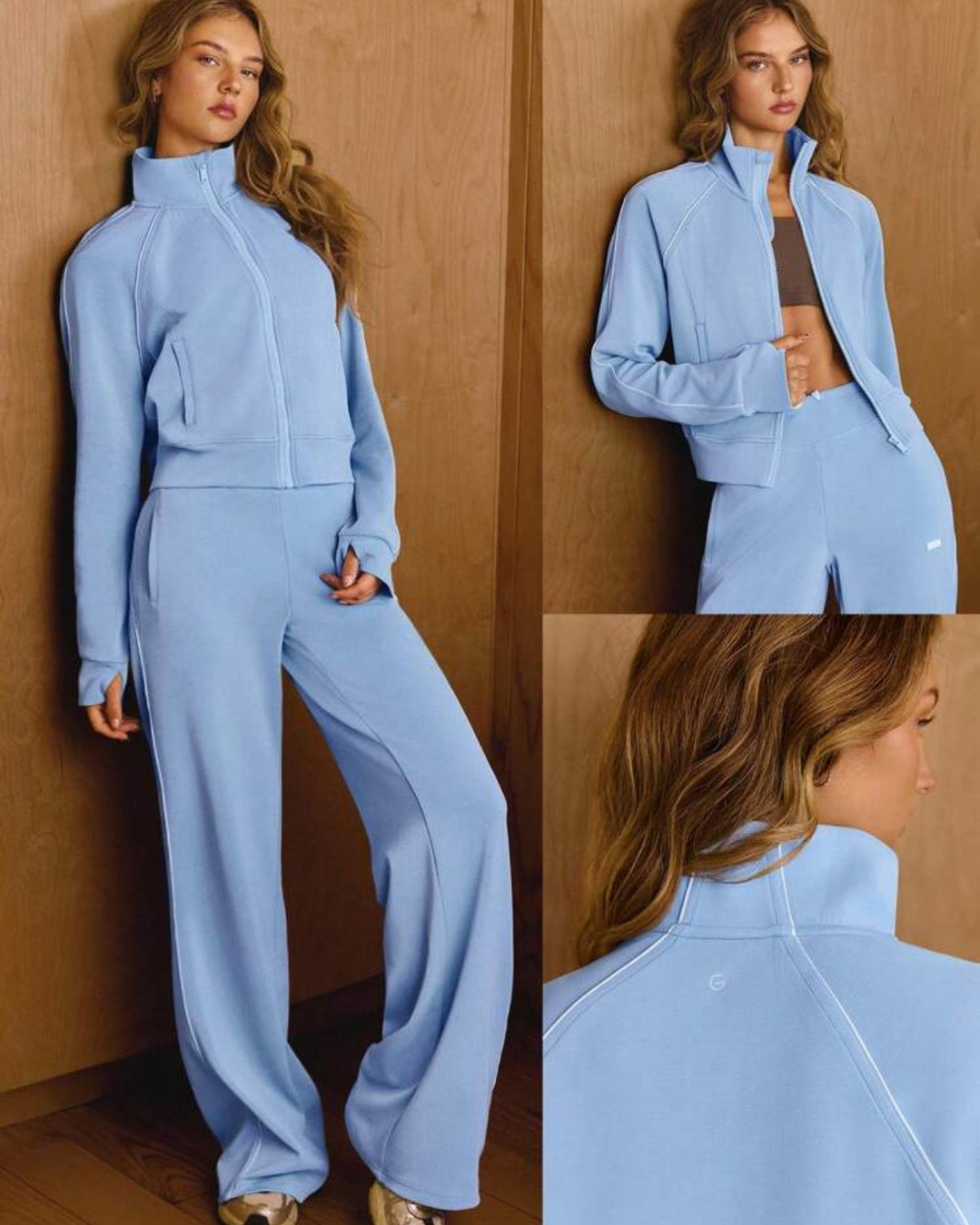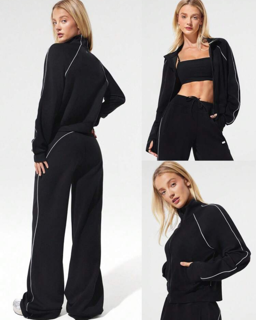 Figurbetonte, aber bequeme Passform mit praktischem Reißverschluss, Seitentaschen und Daumenöffnungen. Ideal für Alltag, Reisen oder Training.